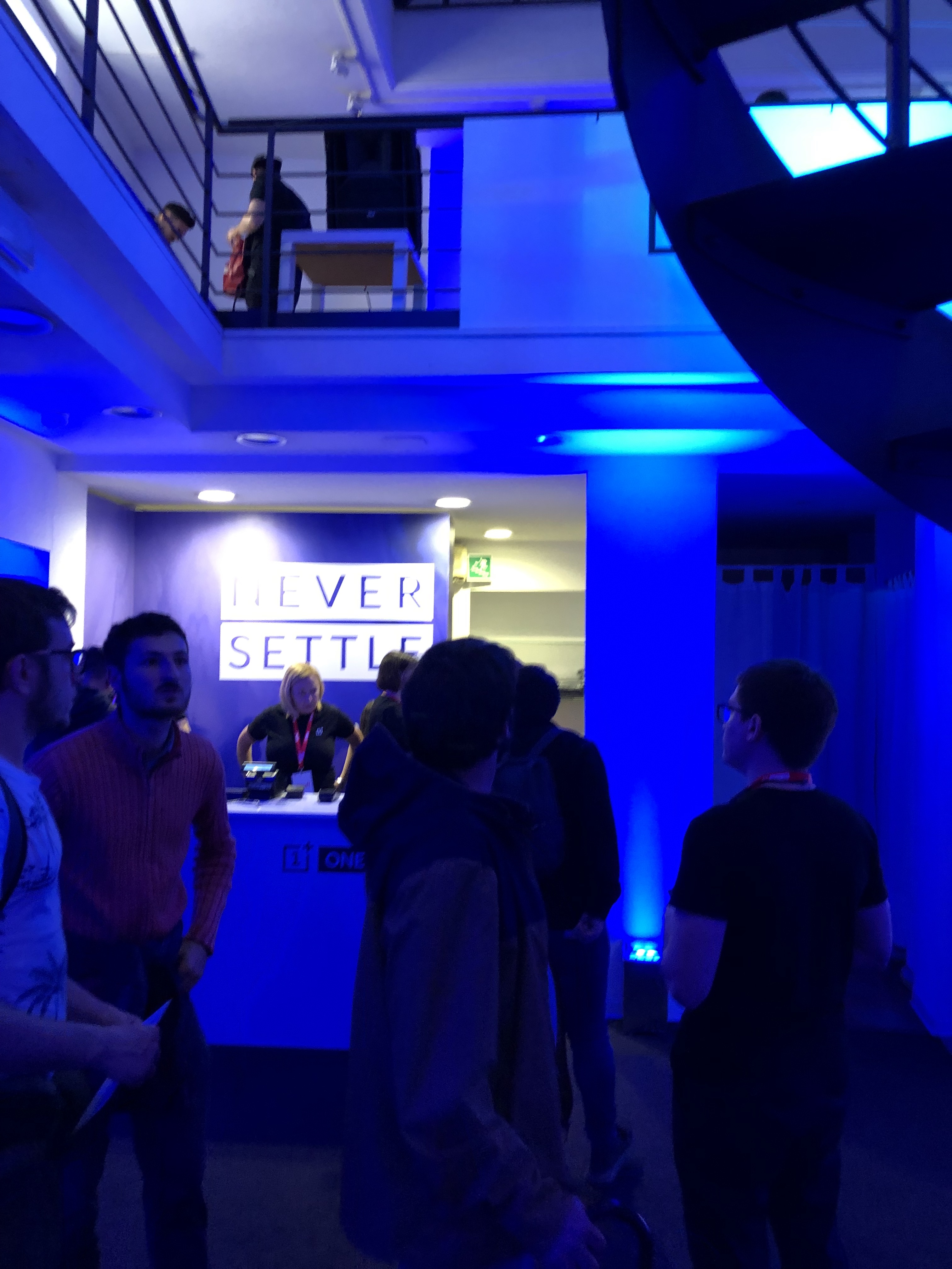 Mentre facevamo la fila sono anche riuscito a fare due chiacchiere con un responsabile OnePlus competente e gentilissimo; mentre aspettiamo ci regalano una maglietta a testa e ci forniscono pure una bottiglietta d’acqua, entrambe le cose con il logo OnePlus.