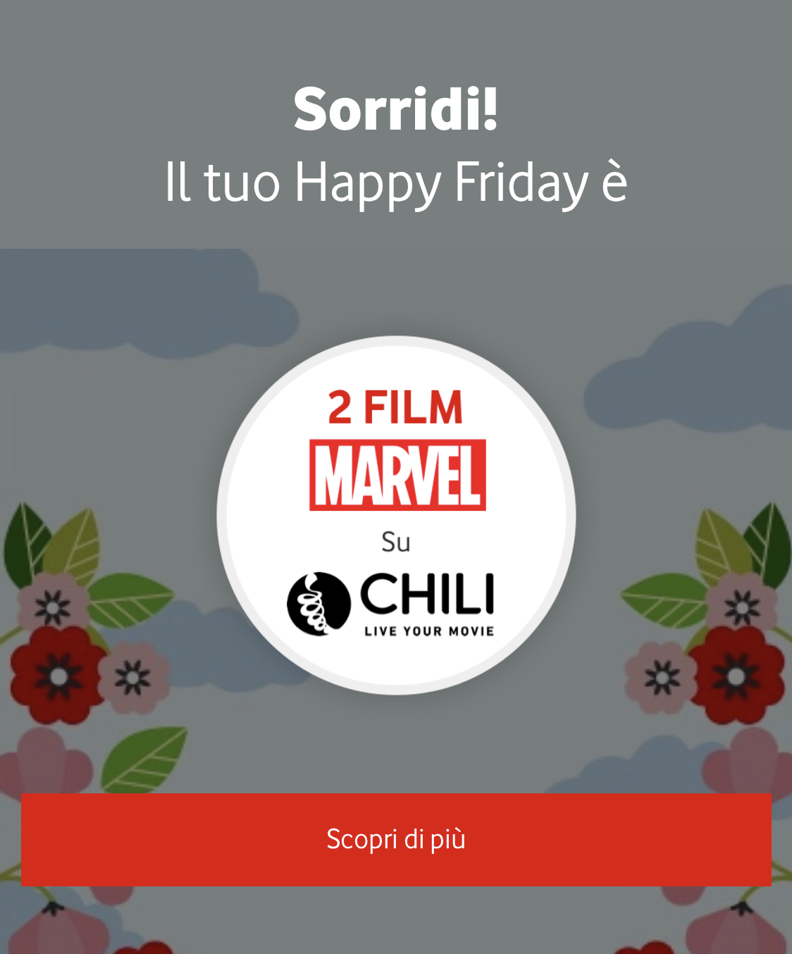 Questa settimana Vodafone Happy regala una Gift Card da 10€ per noleggiare film della Marvel su Chili.