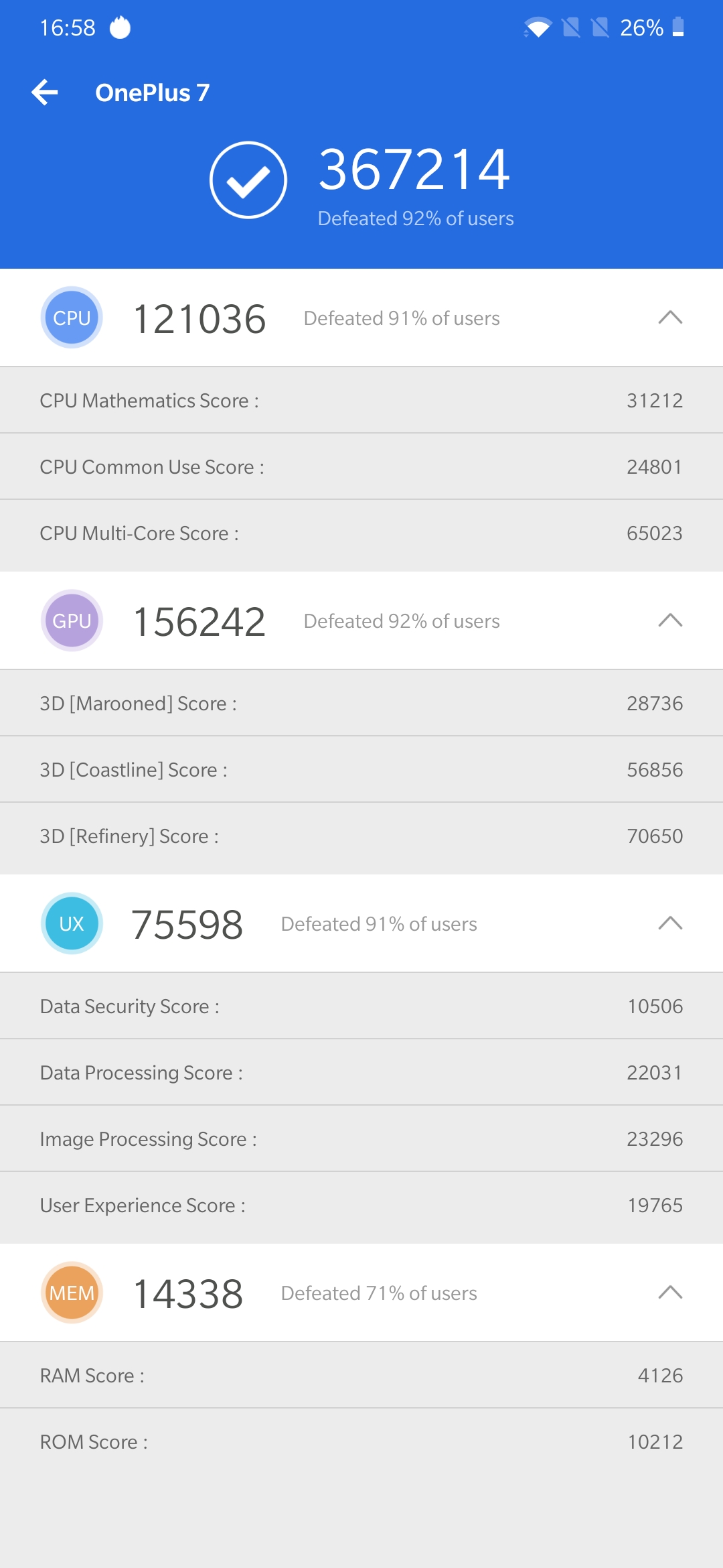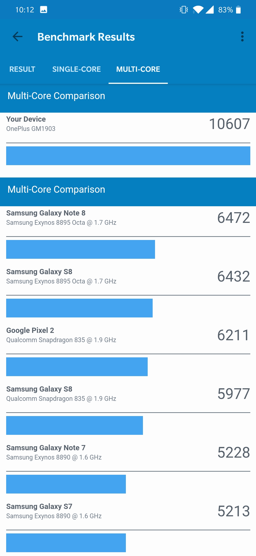 Questo OnePlus 7 migliora di un bel po’ le prestazioni offerte dal 6T e fa al pari (se non un po’ meglio) col predecessore per quanto riguarda l’autonomia.