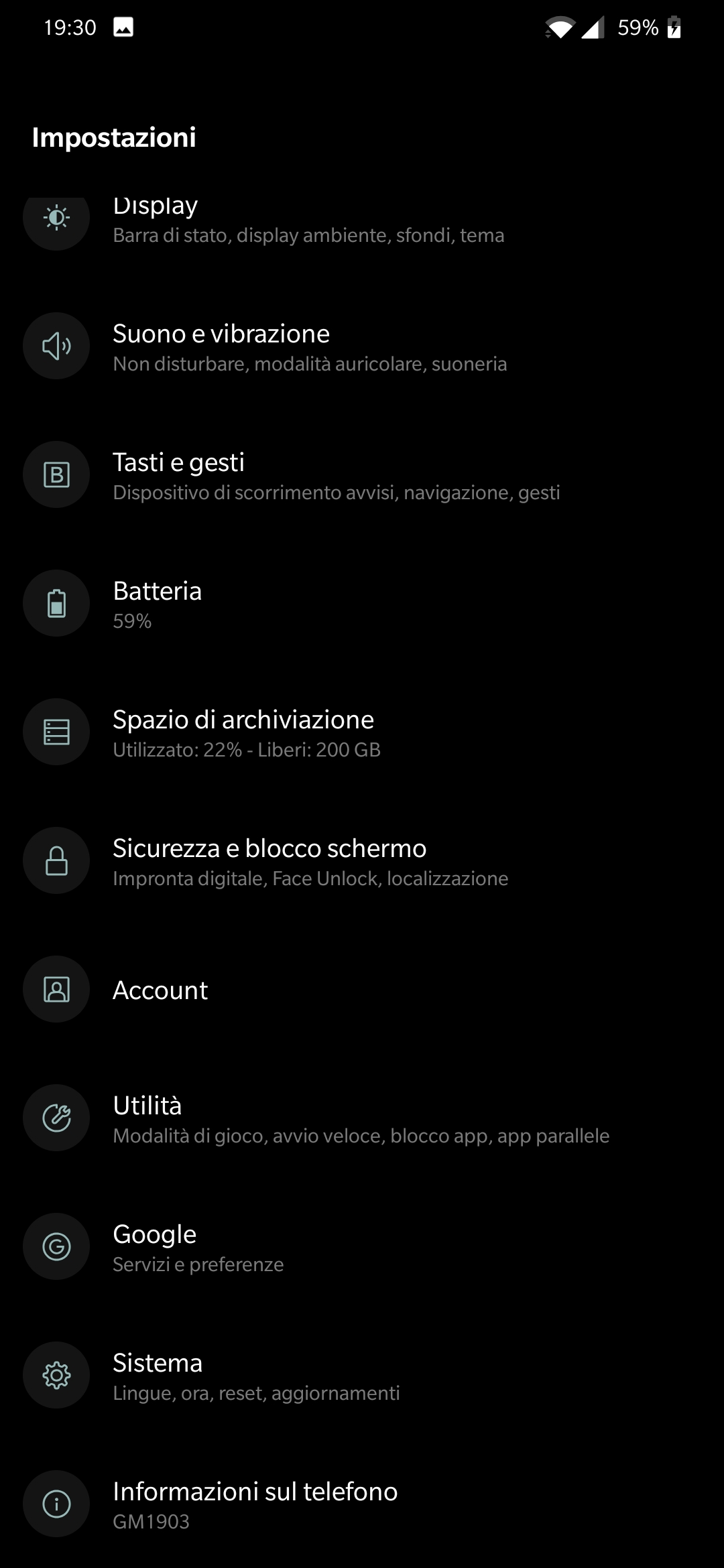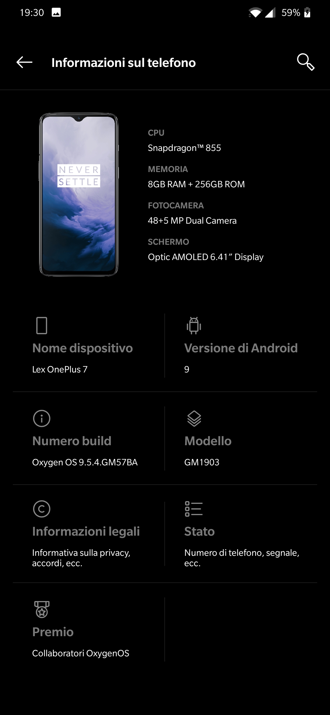 A bordo di questo smartphone troviamo la OxygenOS 9.5.4 con Android Pie 9 e le patch di sicurezza aggiornate ad Aprile 2019.