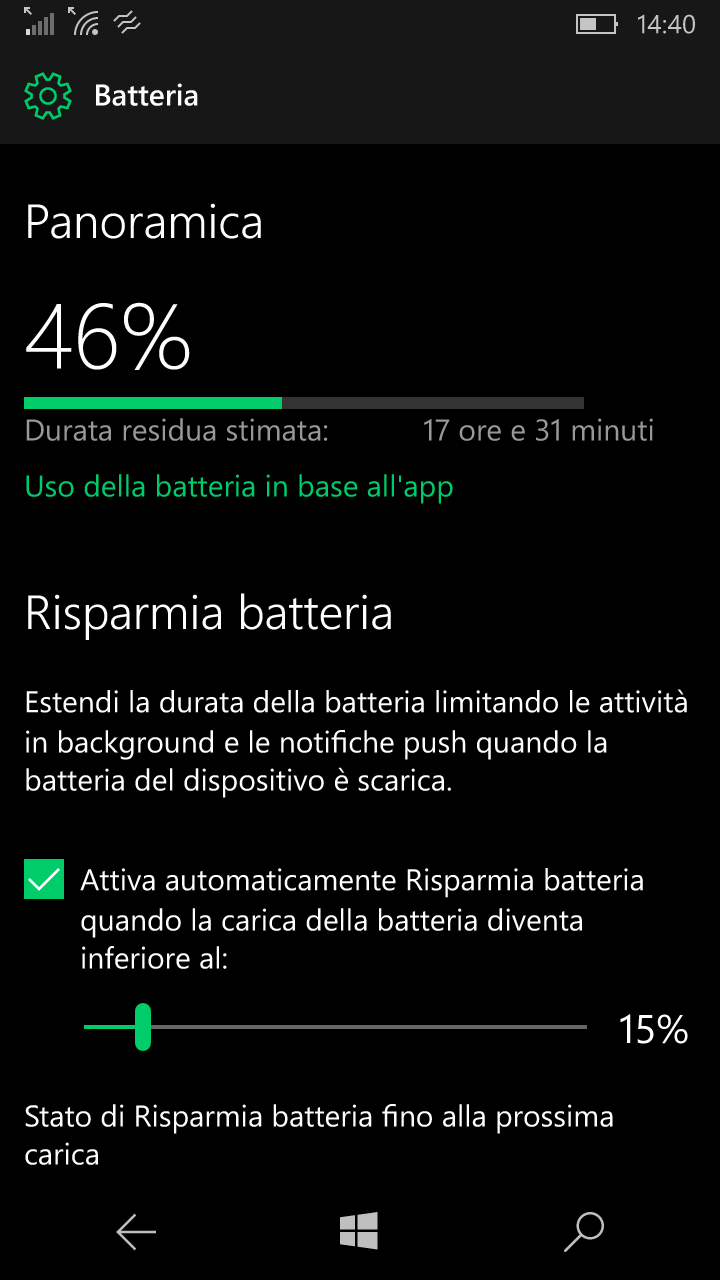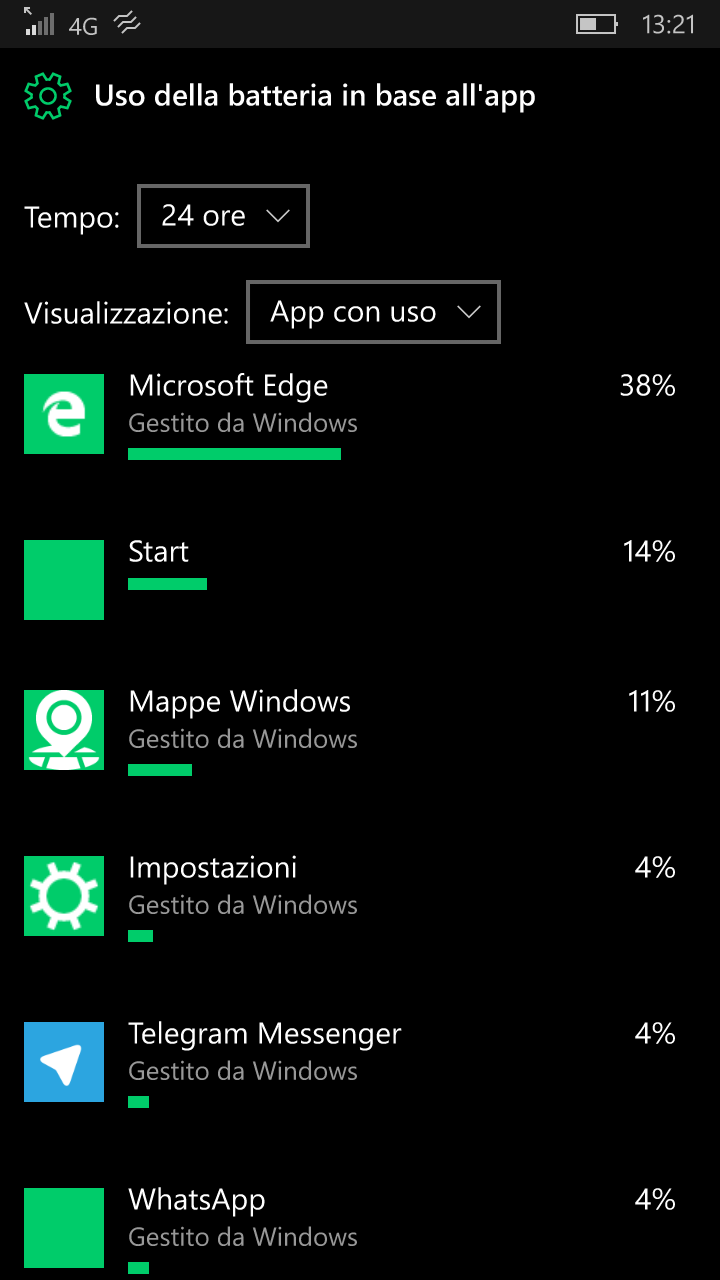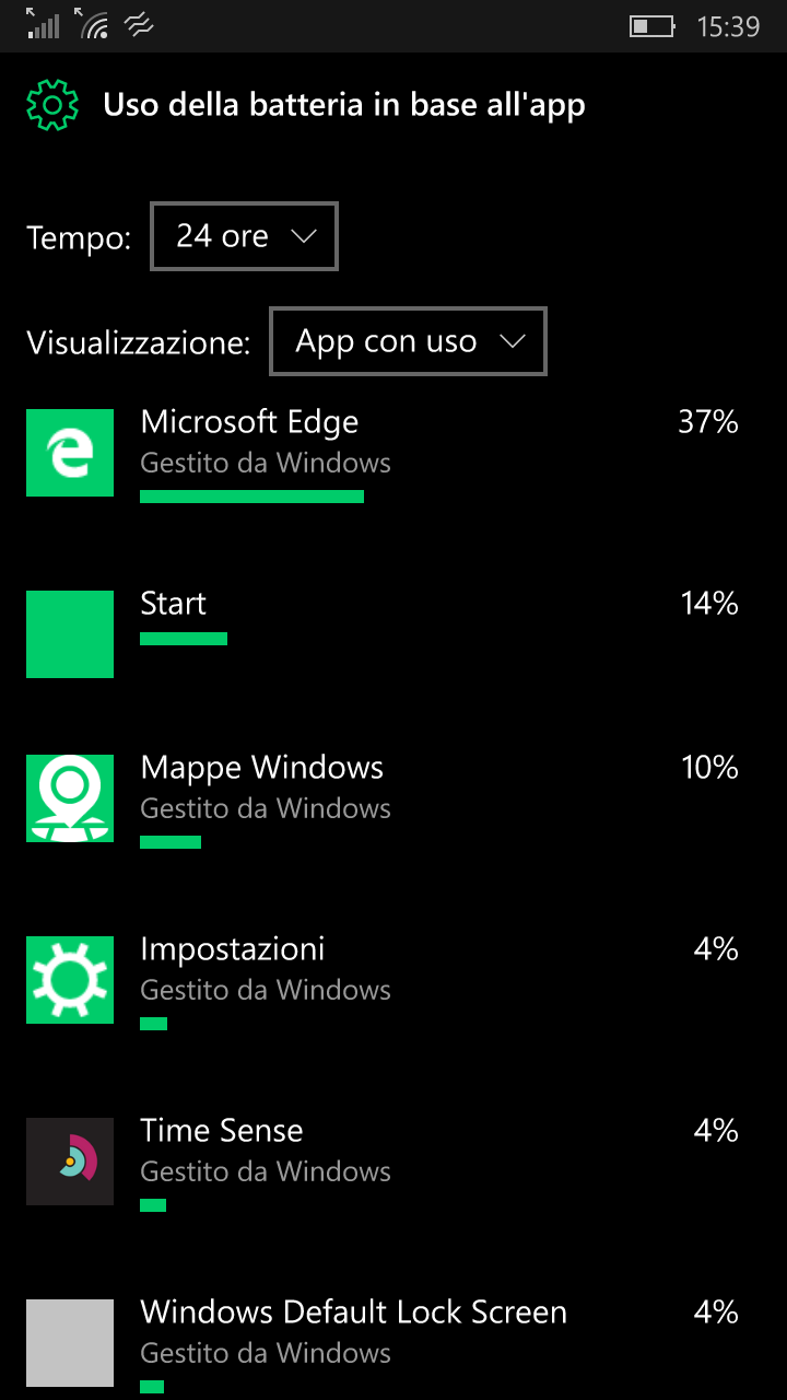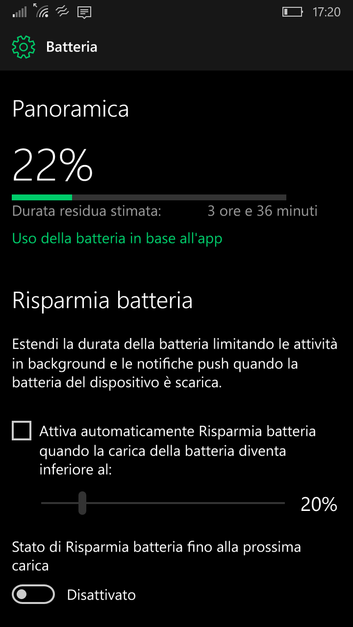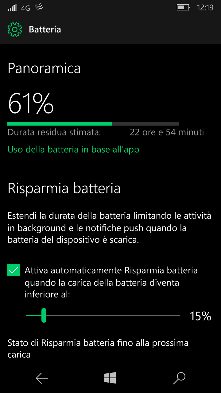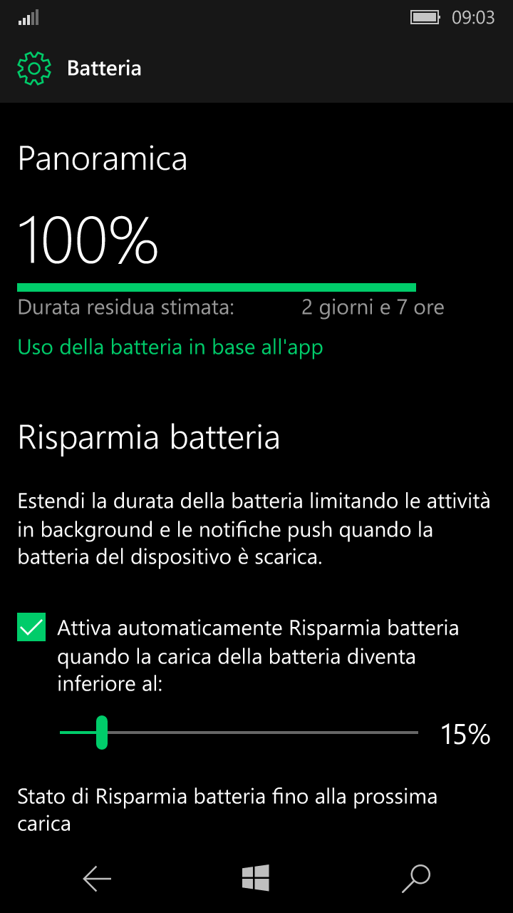 Configurazione del telefono: 4 caselle mail in push, Telegram, WhatsApp, Spotify per la musica, Mappe per la navigazione. Per aggiornare il live ho proverò ad usare la versione mobile WordPress con Edge. La sim inserita è della Wind. La luminosità è settata in automatico dal sensore. Per conoscere i dati sulle ore reali di utilizzo ho sfruttato un’applicazione che si chiama Time Sense.