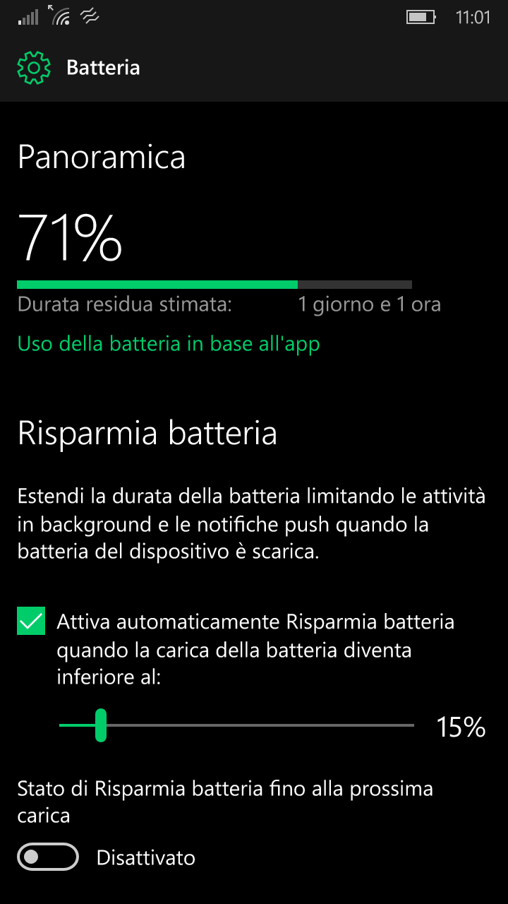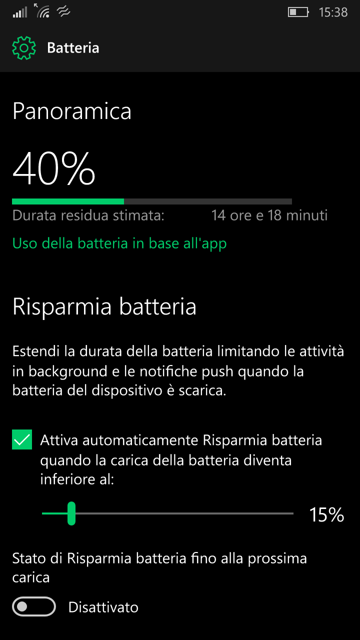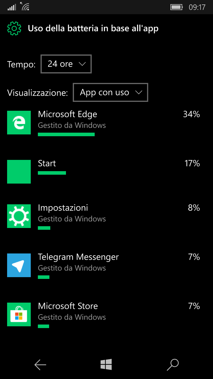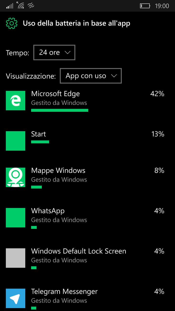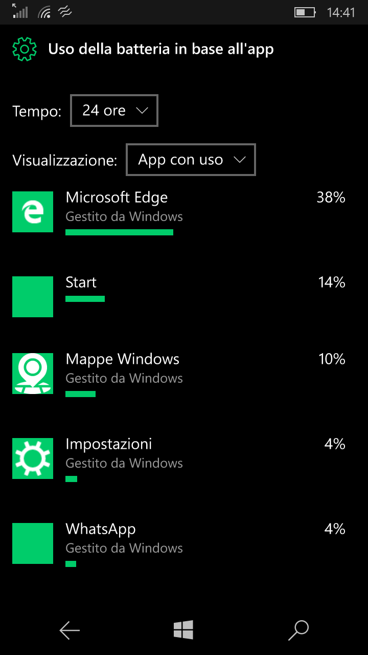 Configurazione del telefono: 4 caselle mail in push, Telegram, WhatsApp, Spotify per la musica, Mappe per la navigazione. Per aggiornare il live ho proverò ad usare la versione mobile WordPress con Edge. La sim inserita è della Wind. La luminosità è settata in automatico dal sensore. Per conoscere i dati sulle ore reali di utilizzo ho sfruttato un’applicazione che si chiama Time Sense.