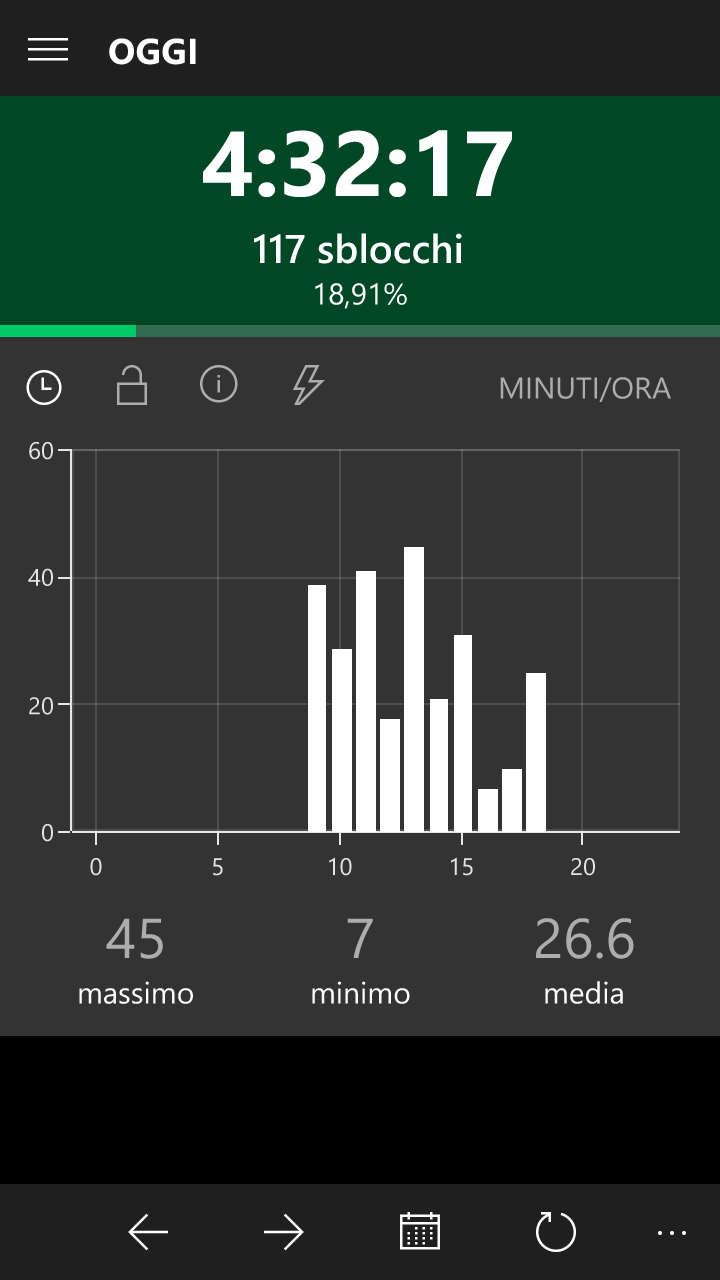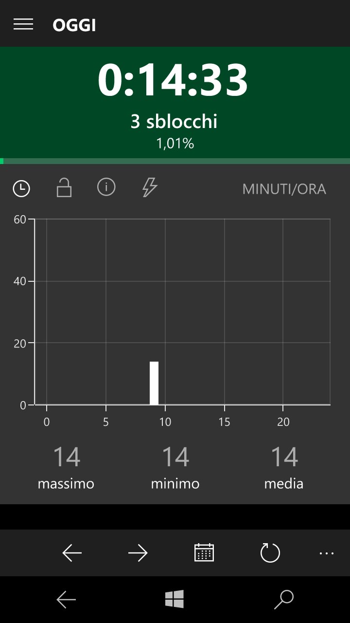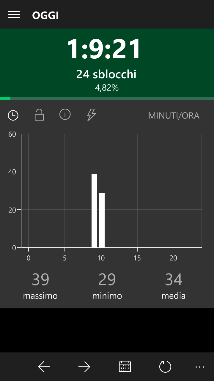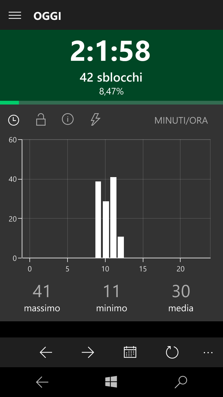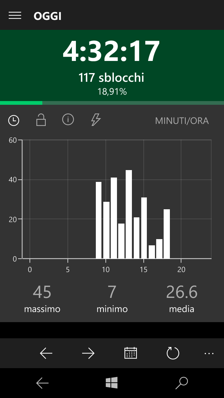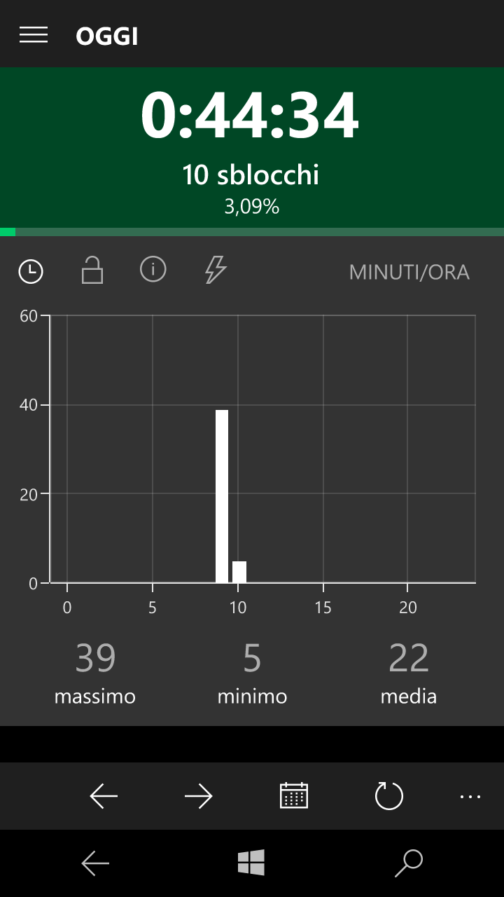 Configurazione del telefono: 4 caselle mail in push, Telegram, WhatsApp, Spotify per la musica, Mappe per la navigazione. Per aggiornare il live ho proverò ad usare la versione mobile WordPress con Edge. La sim inserita è della Wind. La luminosità è settata in automatico dal sensore. Per conoscere i dati sulle ore reali di utilizzo ho sfruttato un’applicazione che si chiama Time Sense.