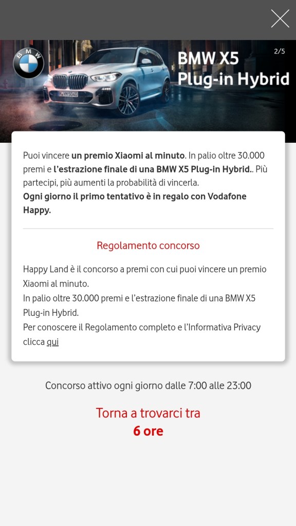 Il 30 Marzo 2020 vi sarà invece l’estrazione finale di una BMW X5 Plug-in Hybrid: più si partecipa al concorso, più vi sarà possibilità di vincerla.