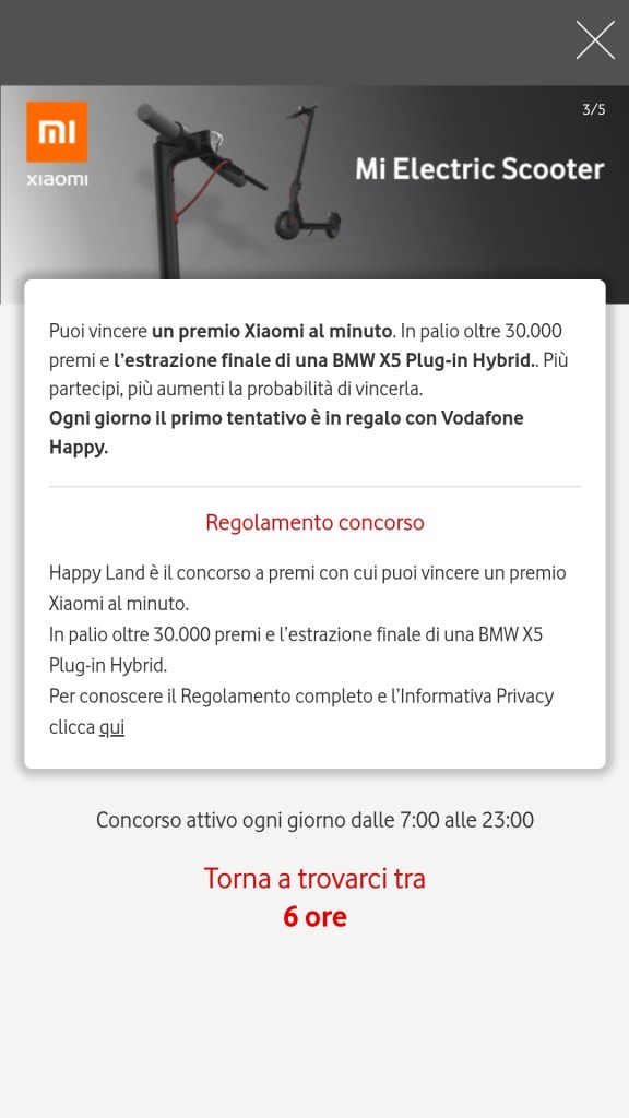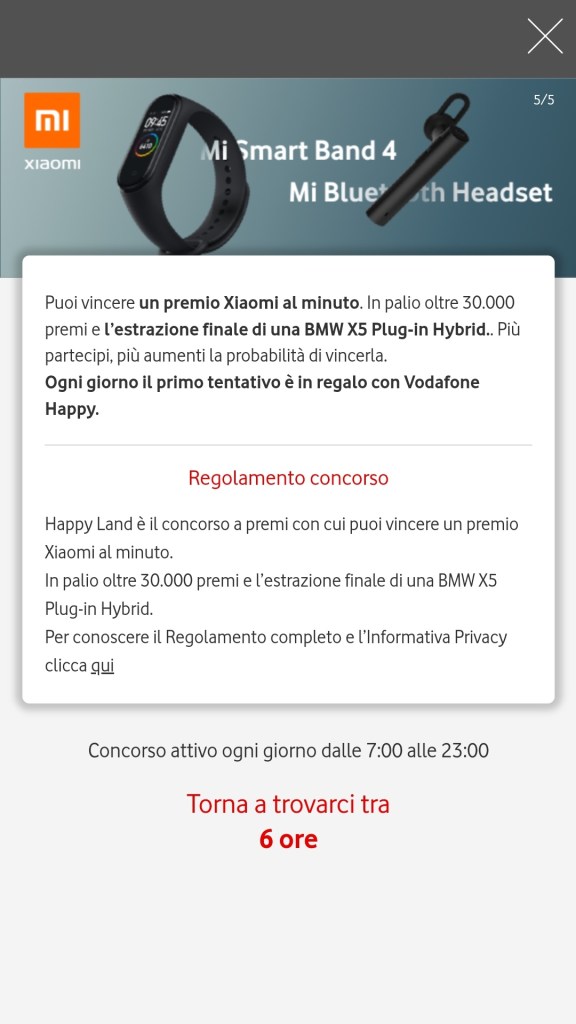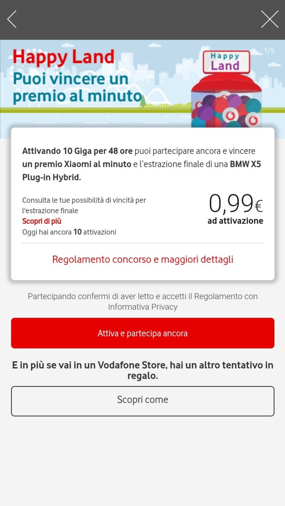 L’attivazione di Happy 10 Giga ti consente di partecipare a Happy Land dalle 7 fino alle 22:59 del giorno dell’attivazione.