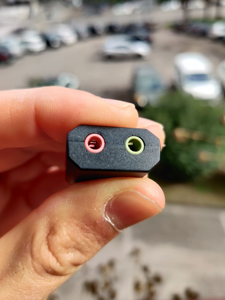 In parole povere si tratta di un piccolo accessorio USB che fornisce due porte jack da 3.5 mm: la porta rosa è un’ingresso per il microfono (mono), mentre la porta verde è un’uscita stereo 2.1 per connettere speakers o cuffie.