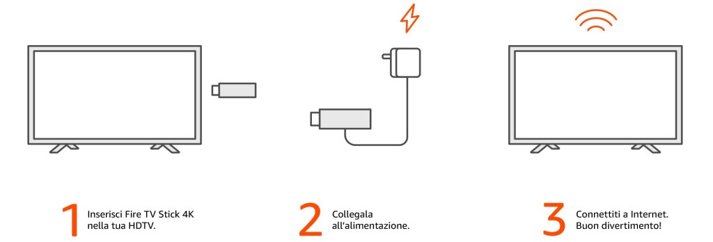 Colleghi la Fire TV Stick alla TV, la attacchi all’alimentatore, inserisci la chiave di sicurezza per la tua rete Wi-Fi e il gioco è fatto.