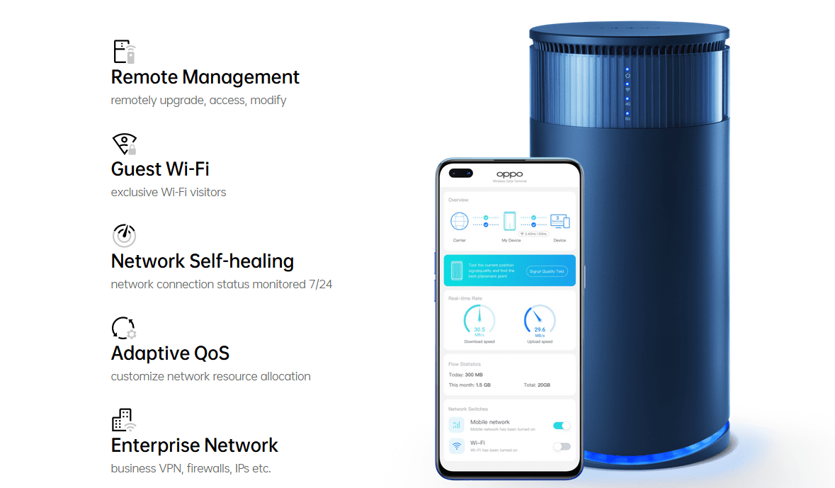 OPPO 5G CPE Omni è il nuovo modem 5G di ultima generazione che sfrutta un chipset Snapdragon X55 di Qualcomm, studiato appositamente per le piccole imprese o per le soluzioni casalinghe.
