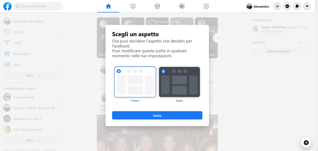 Una volta cliccato sul tasto “provalo” ci verrà richiesto di scegliere un aspetto tra chiaro e scuro. La scelta non è comunque definitiva perché è possibile passare dall’uno all’altro in qualsiasi momento.
