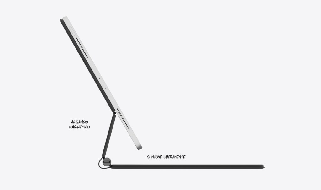 La Magic Keyboard, grazie alla propria porta USB Type-C, consente di ricaricare l’iPad Pro in maniera “pass-through”, senza che venga occupata la porta USB Type-C del tablet
