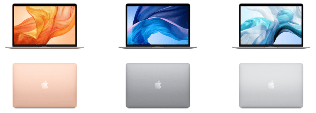 - MacBook Air 13″ con processore Intel Core i3 (dual-core a 1,1GHz), 8 GB di RAM e 256 GB di storage al prezzo di 1229€