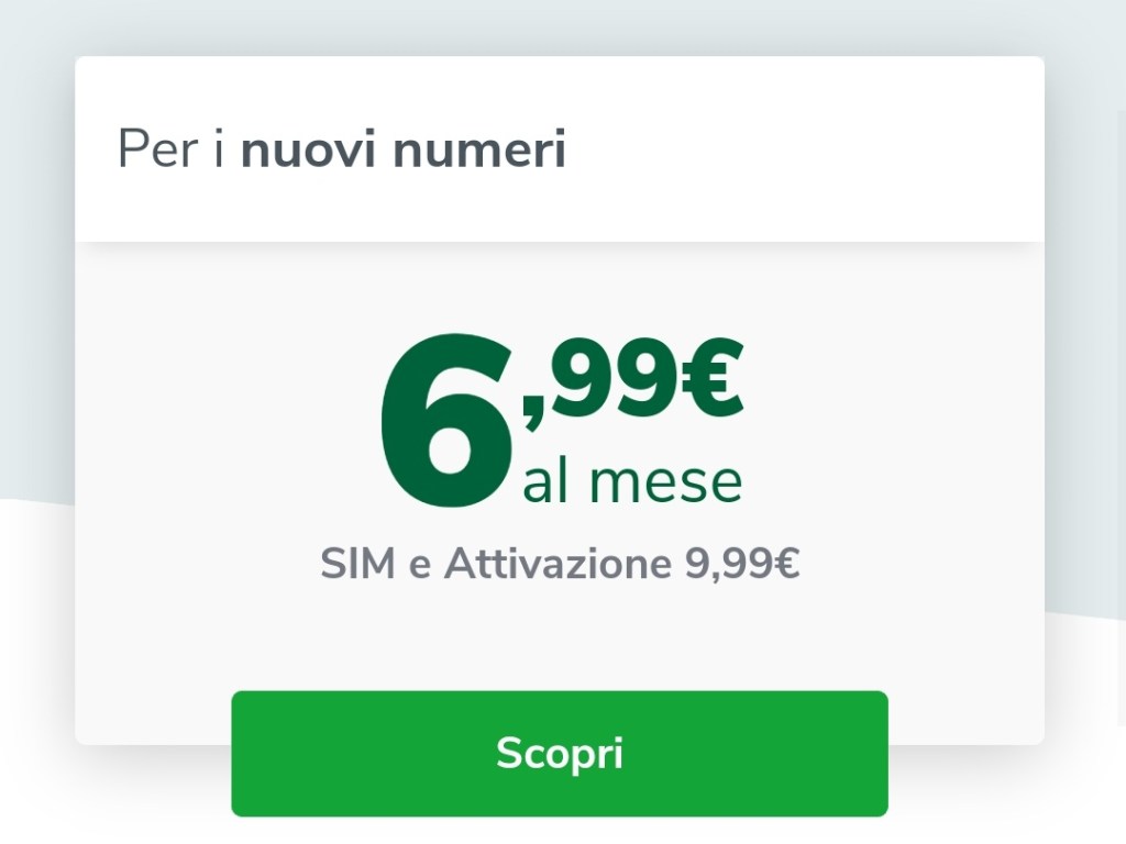 L’offerta è dedicata alle nuove attivazioni (nuovi numeri) e prevede 30GB di traffico dati (seppur con velocità limitata a 30Mbps), minuti ed sms illimitati a 6,99€/mese con il costo di SIM e attivazione pari a 9,99€ una tantum.