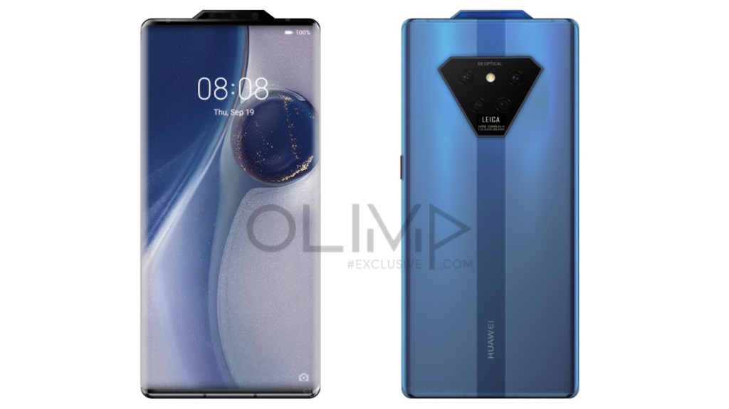 La parte anteriore del dispositivo ha una sorprendente somiglianza con il Mate 30 Pro (per questo potrebbe trattarsi puramente dell’uso di Photoshop per ritoccare l’immagine).