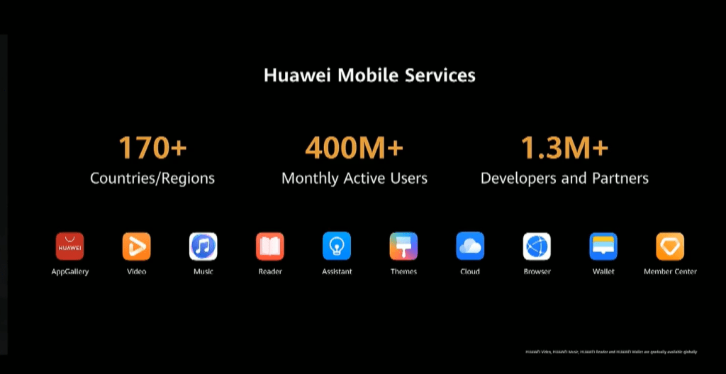 In conclusione, i Huawei Mobile Services sono disponibili in oltre 170 paesi, contano oltre 400 milioni di utenti attivi mensilmente e oltre 1,3 milioni di sviluppatori e partner.