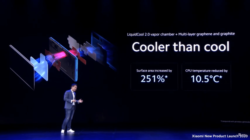 14:34 – Sistema di raffreddamento a liquido per tenere a bada lo Snapdragon 865 di Qualcomm. Questo significa 5G e Wi-Fi 6.