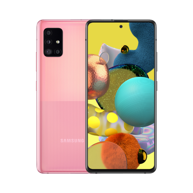 Samsung Galaxy A51 5G sarà disponibile nelle tre colorazioni Prism Cube Black, Prism Cube White e Prism Cube Pink.
