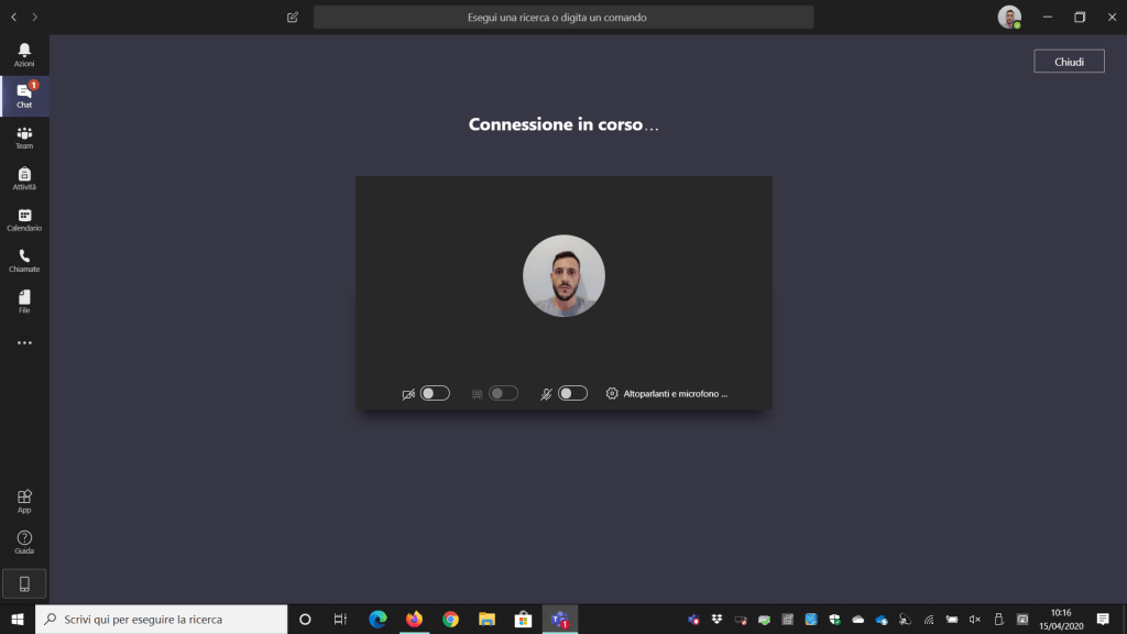 Nel mio caso riesco ad accedere alle chat ma non posso partecipare alle riunioni: dopo aver cliccato su Partecipa, resto fisso sulla schermata Connessione in corso.