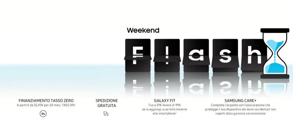 Samsung Italia ha annunciato il lancio dell’iniziativa Flash Weekend, una promozione sul proprio sito www.samsung.com che prevede prezzi scontati su alcuni prodotti selezionati.