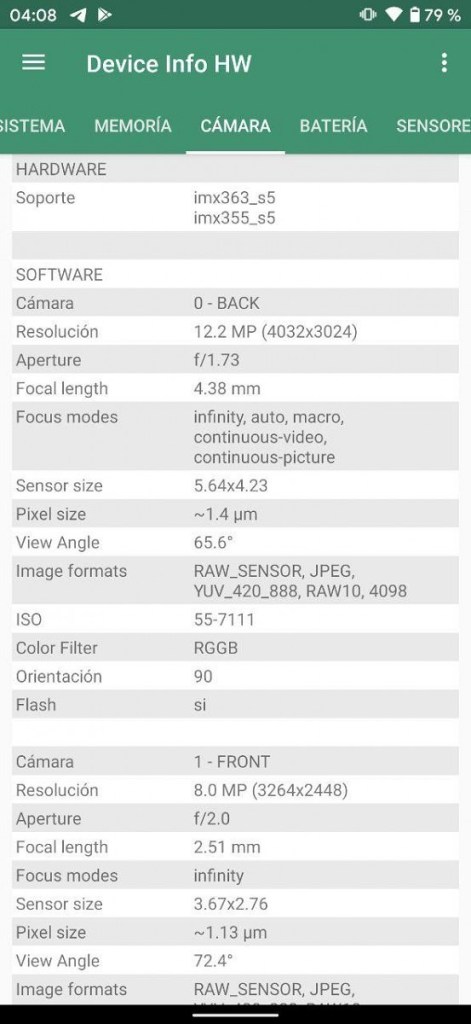 Inoltre, le app segnalano che la fotocamera frontale del Pixel 4a è a fuoco fisso e supporta l’EIS ma non l’OIS; di contro, la fotocamera posteriore supporta sia OIS che EIS con messa a fuoco automatica.