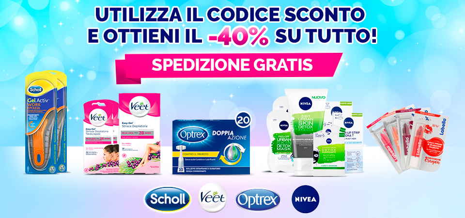 Happy Friday regala il 40% di sconto sui tuoi acquisti Nivea, Labello, Veet, Scholl e Optrex su voda.it/shopnivea