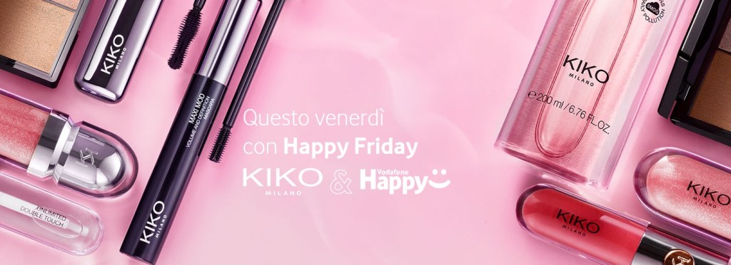 Oggi, Venerdì 12 Giugno, Vodafone Happy Friday offre un codice sconto del 30% sui tuoi acquisti nei negozi o sul sito KIKO MILANO.
