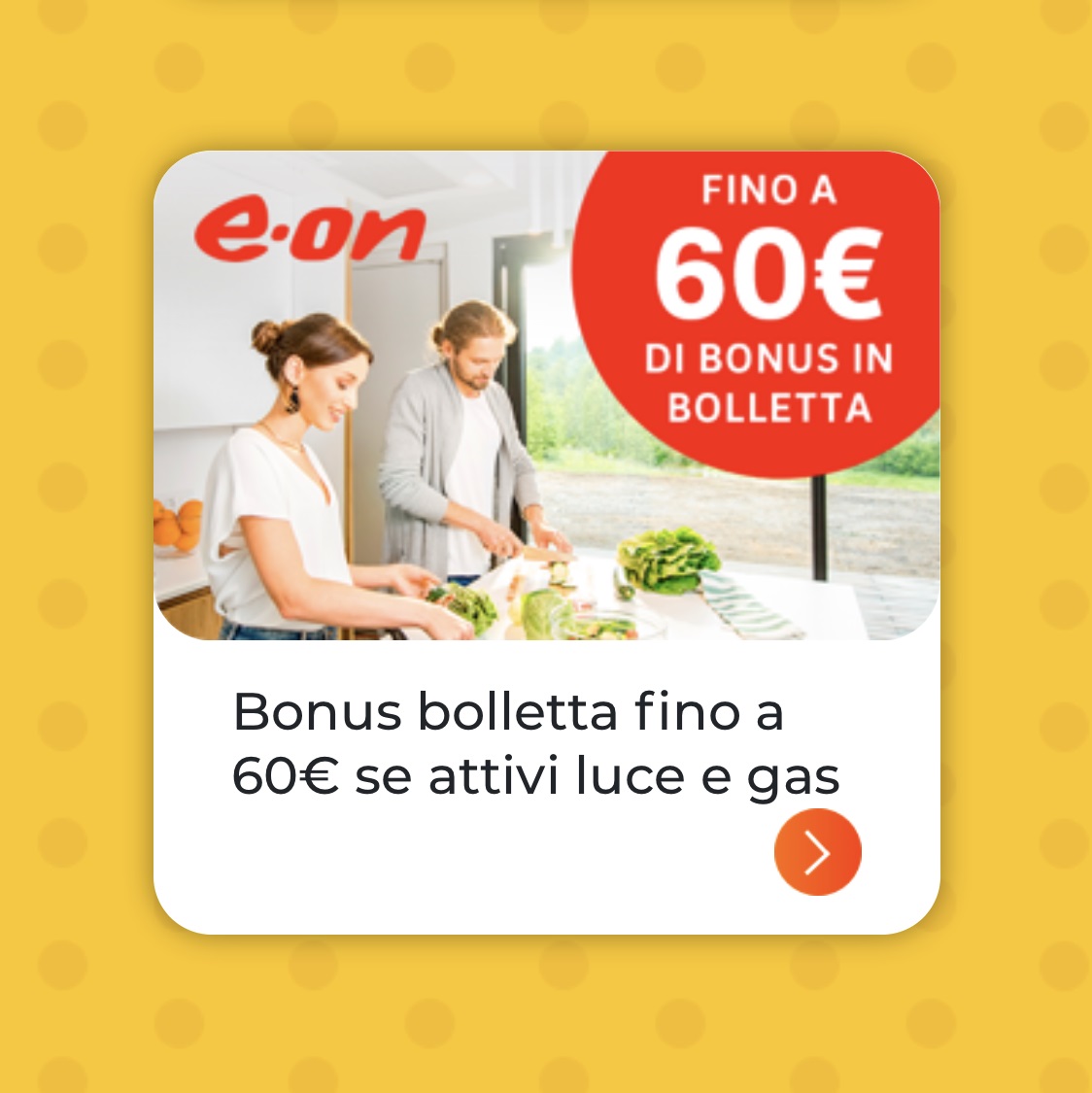 - Un bonus in bolletta fino a 60€ se per i nuovi clienti gas e luce di E.ON
